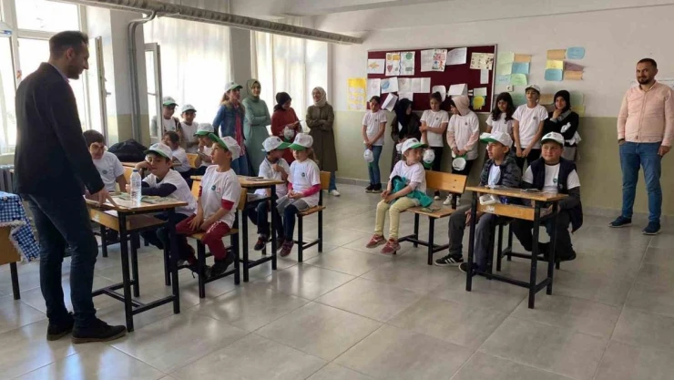 Erzincan İl Tarım ve Orman Müdürlüğü ekiplerince ilkokul öğrencileri organik tarım konusunda bilgilendiriliyor.
