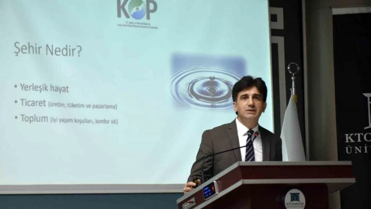Konya’da düzenlenen İklim Değişikliği ve Şehirlerin Geleceği çalıştayında konuşan Konya Ovası Projesi (KOP) Bölge Kalkınma İdaresi Başkanı Dr. Murat Karakoyunlu, Bölge Kalkınma İdaresinin faaliyetleri hakkında bilgiler paylaştığı katılımcılara; iklim değişikliği, toprak ve su yönetimi, modern ve alternatif üretim çeşitlerinin geliştirilmesi, yerinde üretim ve yerinde tüketim mekanizmalarının iyileştirilmesi, verimlilik, bir bütün olarak değerlendirilmesi gereken şehirler ve bağlı taşra alanlarda üretim şartlarının iyileştirilmesi, üreticinin değer zincirindeki payının artırılması, iklim değişikliğine bağlı risklerin asgari seviyeye indirilmesi ile bölgeler arası dengesizliklerin giderilmesi ve şehirlerin yükünün azaltılması konularda görüşlerini paylaştı.