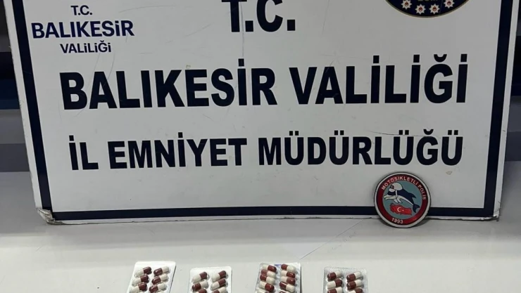 Balıkesir'de Asayiş Şube Müdürlüğüne bağlı Motosikletli Polis Timleri, il merkezinde şüpheli bir kişinin üst aramasında 54 adet sentetik hap ele geçirdi. Polis ekipleri uyuşturucuyla yakalanan şahsı gözaltına aldı.