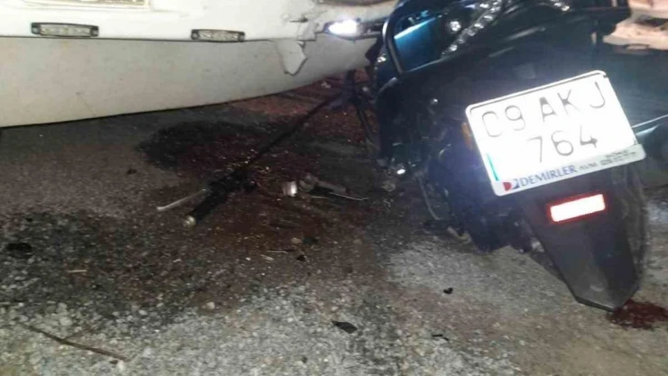 Aydın'ın Kuşadası ilçesinde virajı alamayan motosiklet sürücüsü, karşı yönden gelen kamyonla çarpıştı. Kazada motosiklet, kamyona ok gibi saplanırken ağır yaralanan sürücü ambulansla hastaneye kaldırıldı.