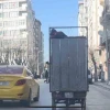 Odunpazarı ilçesi Mustafa Kemal Atatürk Caddesi’de üç tekerlekli ve ardında kasası bulunan motosikleti geri dönüşüm malzemesi yükleyen şahıslar, trafiğin yoğun olduğu saatlerde yola çıktı. Şahıslardan biri motosikleti kullanırken diğeri ise kasada bulunan kartonların üzerine çıkıp yolculuk etti. Sürücüsünün sürekli manevra yapması sonucu sarsılan aracın kasasındaki kartonların üzerinde rahat bir şekilde cep telefonu ile uğraşan şahıs ‘pes’ dedirtti. Trafiği tehlikeye atan ve kask takmayan şahısların metrelerce akan trafikte ilerledikten sonra ara sokağa döndü. Şahısların tehlikeli yolculuk başka bir aracın içindeki kameraya anbean yansıdı.