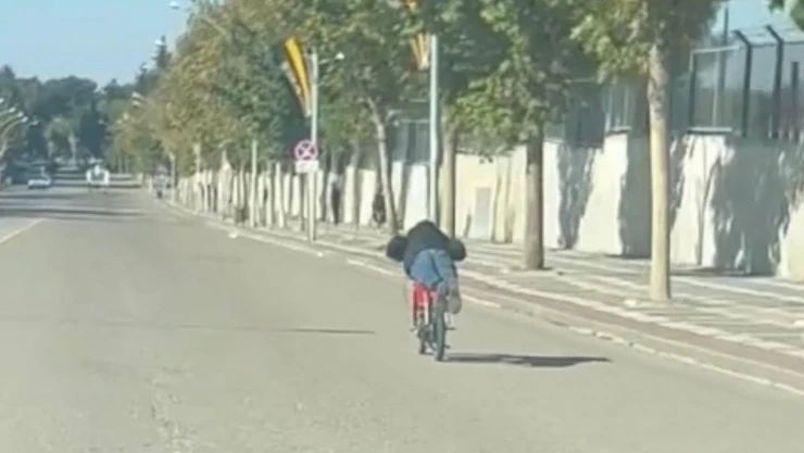 Şanlıurfa'nın Siverek ilçesinde bir kişi yüzüstü yatarak motosiklet sürdü. O anlar amatör kameraya yansıdı.
