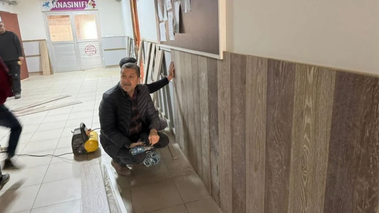 Okul Müdürü Tahsin Özbek, okulların ara tatile girmesini fırsat bilerek öğretmen ve velileriyle yaptığı güç birliği ile okula yaptıkları parke döşemelerinin yanında ayrıca iç ve dış cephesini boyayarak okulun daha güzel bir görünüme kavuştuğunu ifade etti.