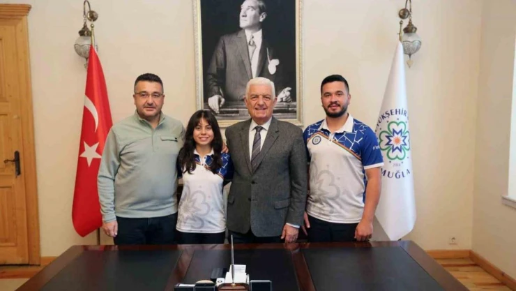 Antalya’da düzenlenen milli takım seçmelerinde Avrupa ve Dünya rekoru kıran Hazal Burun, okçuluk milli takımına seçilen Emircan Haney, Muğla Büyükşehir Belediye Başkanı Dr. Osman Gürün’ü ziyaret etti. Hazal Burun “Salon federasyon kupası milli takım seçmelerinde sıralamada 598 puan alarak Avrupa ve Dünya rekoru kırdım. Aynı zamanda milli takıma seçilerek Hırvatistan’a gitmeye hak kazandım. Çok güzel bir dönem geçiriyorum. Salon Avrupa şampiyonasında da Avrupa Şampiyonu olmayı hedefliyorum. Bizlere her türlü imkanı sağlayan ve arkamızda ki güç olduğunu gördüğümüz Muğla Büyükşehir Belediye Başkanımız Dr. Osman Gürün’e teşekkür ederim” dedi. Emircan Haney “ 14 yıldır okçuluk sporu ile uğraşıyorum. Muğla Büyükşehir Belediyesi adına yarışıyorum. Son olarak Antalya’da Salon Federasyon Kupasına katıldık. Hazal Burun ile birlikte milli takıma seçildik. Hırvatistan’da yapılacak olan Salon Avrupa Şampiyonasına katılacağız. Burada da şampiyonluk hedefliyoruz. Daima arkamızda olan Muğla Büyükşehir Belediye Başkanımız Dr. Osman Gürün’e çok teşekkür ederim” dedi. Muğla Büyükşehir Belediyesi Okçuluk Antrenörü Dr. Ejder Sözen “Antalya’daki yarışma 2024 sezonunun ilk yarışmasıydı. 2024 yılına iyi bir başlangıç yaptık. Antalya’da milli takım seçmeleri yapıldı. Yarışmada puanlarımız yüksekti. Hazal’ın 598 puan alarak hem Avrupa hem Dünya rekorunu kırdı. Dünya Okçuluk Federasyonuna rekorun tescillenmesi için başvuruda bulunduk. Hırvatistan’da yapılacak olan Salon Okçuluk Avrupa Şampiyonasında her ikisinde de derece bekliyorum. Büyükşehir Belediye Başkanımız Dr. Osman Gürün’ün bizlere sağladığı imkan ve destek çok önemli. Bizlere verdiği emek için kendilerine çok teşekkür ediyorum” dedi.