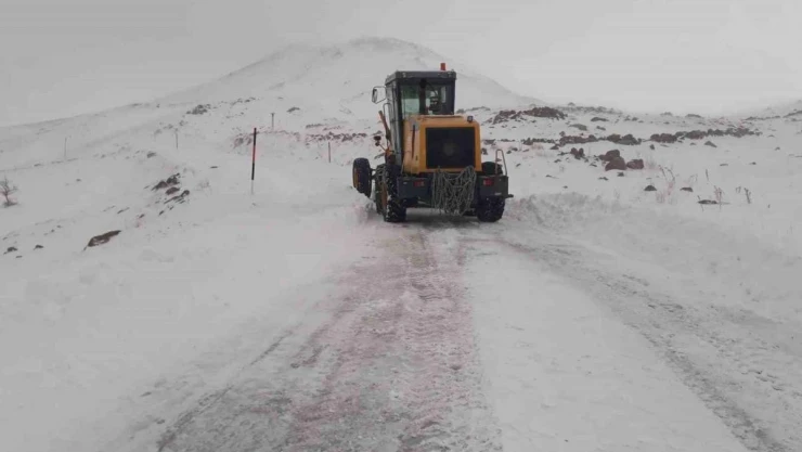 Van'ın Muradiye ilçesinde kar yağışı nedeniyle kapanan yolları açma çalışmaları devam ediyor.