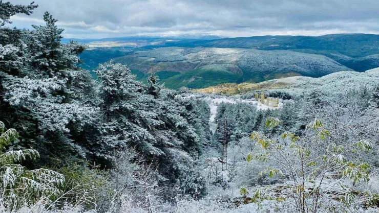 Kütahya'nın Gediz ilçesinde hafta sonunda yüksek kesimlerde etkili olan kar yağışı sonrasında Murat Dağında kartpostallık görüntülerin oluşmasına neden oldu.
