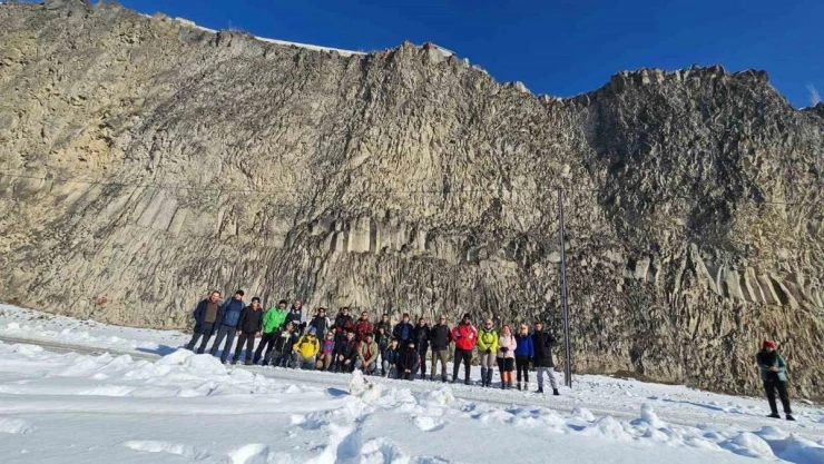 Bazid Dağcılık Kulübü üyeleri, küresel ısınmaya dikkat çekmek amasıyla Murat Kanyonu’nda yürüyüş yaptı.