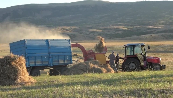 Geniş ovası ve verimli otlakları ile tarım ve hayvancılık merkezi olan Muş’ta kış mevsimi öncesi hayvanlar için biçilen otlar patoza verilerek saman haline getiriliyor.
