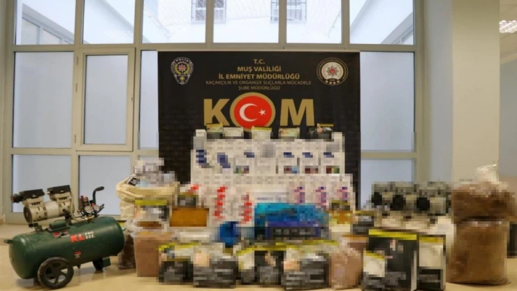 Muş’ta polis ekipleri tarafında 2 adrese eş zamanlı gerçekleştirilen operasyonda bandrolsüz sigara ve tütün ürünleri ele geçirildi.