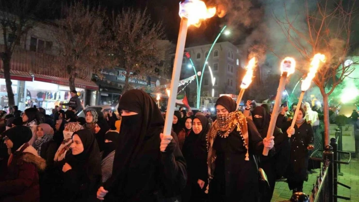 Muş'ta İsrail'in Filistin'e yönelik saldırıları, yüzlerce kişinin katıldığı meşaleli yürüyüşle protesto edildi.