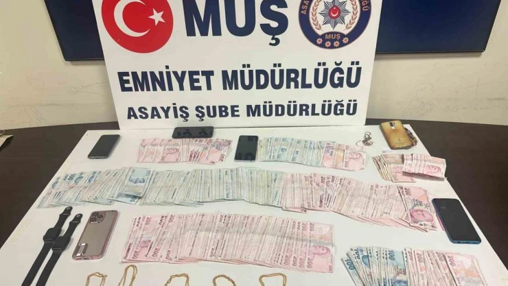 Muş Valiliğinden yapılan açıklamada, Emniyet Müdürlüğü Asayiş Şube Müdürlüğü sorumluluk bölgesinde bulunan bir kuyumcu dükkanında 9 Ocak 2024 günü sahte altın satmak yoluyla gerçekleştirilen dolandırıcılık olayı ilgili olarak şüphelilerin tespiti ve yakalanmasına yönelik çalışma yürütüldüğü belirtildi. Açıklamada, “Yapılan çalışmalar neticesinde 6 şüpheli şahıs tespit edilerek suç eşyaları ile birlikte yakalandı. Şüpheli şahısların yapılan üst aramasında 78 bin 745 Türk Lirası ve 5 adet sahte altın renginde zincir kolye ele geçirildi. Dolandırıcılık suçu ile ilgili olarak gözaltına alınarak adliyeye sevk edilen 6 şüpheli, işlemlerinin ardından adli kontrol kararıyla serbest bırakıldı” denildi.