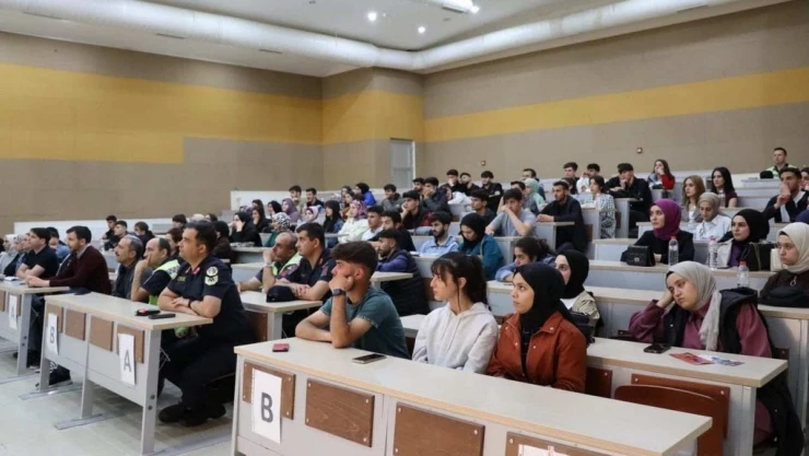 Muş'ta üniversite ve ortaokul öğrencilerine Karayolları Trafik Haftası nedeniyle seminer verildi.