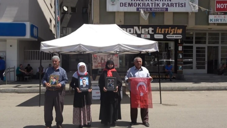 Muş'ta çocuklarının terör örgütü PKK tarafından kandırılarak dağa kaçırılmasından HDP'yi sorumlu tutan ailelerin evlat nöbeti sürüyor.