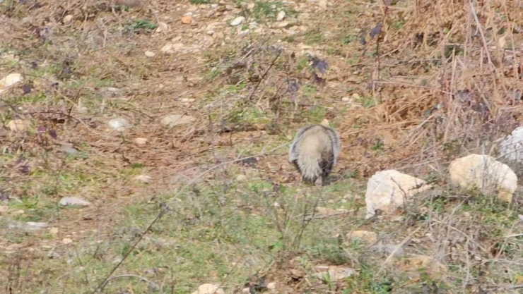 Nesli tükenme tehlikesi altında olduğu için kırmızı listeye alınan porsuk, Kastamonu’da cep telefonu ile görüntülendi.