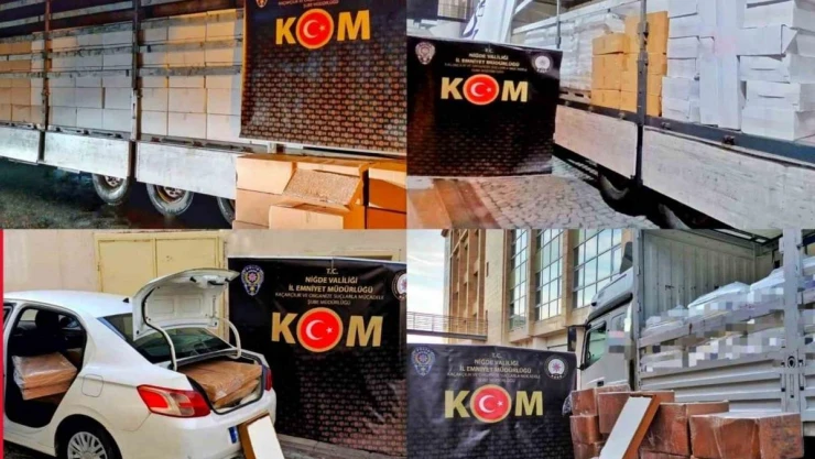 Niğde İl Emniyet Müdürlüğü Kaçakçılık ve Organize Suçlarla Mücadele Şube Müdürlüğü ekipleri tarafından gerçekleştirilen operasyonlarda gümrük kaçağı olduğu tespit edilen 6 milyon 265 bin adet dolu makaron ve 192 bin paket sigara ele geçirildi.