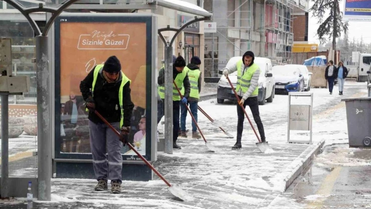 Niğde Belediyesine bağlı ekipler, kar yağışının etkili olduğu kent merkezinde, karla mücadele çalışmalarına başladı.