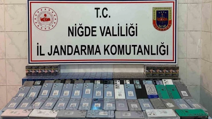 Niğde İl Jandarma Komutanlığı ekipleri tarafından Pınarcık mevkide yapılan denetimde, bir araçta piyasa değeri 1 milyon 200 bin TL olan 78 adet kaçak cep telefonu ile 399 paket kaçak sigara yakalandı.
