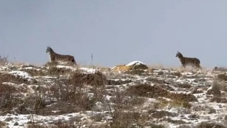 Nesli tükenme tehlikesi altında olan 2 vaşak Niğde'nin Bor ilçesi kırsalında görüntülendi.