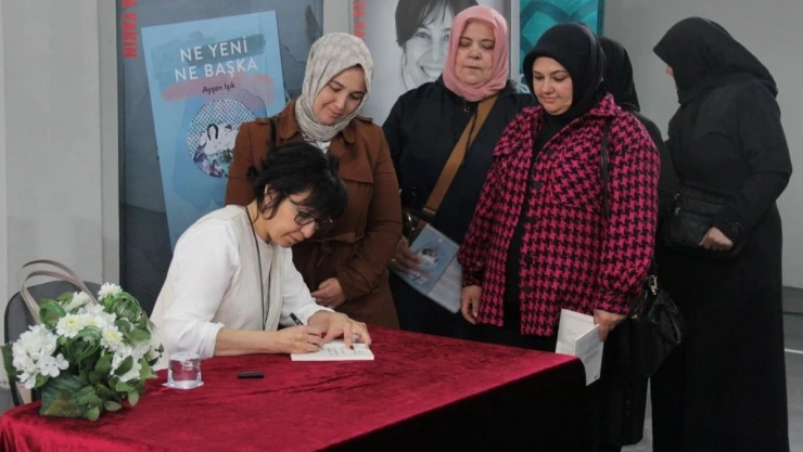 Yazar Ayşen Işık söyleşi sonunda ‘Ne yeni ne başka’ adlı kitabını etkinliğe katılan kadınlara imzaladı.