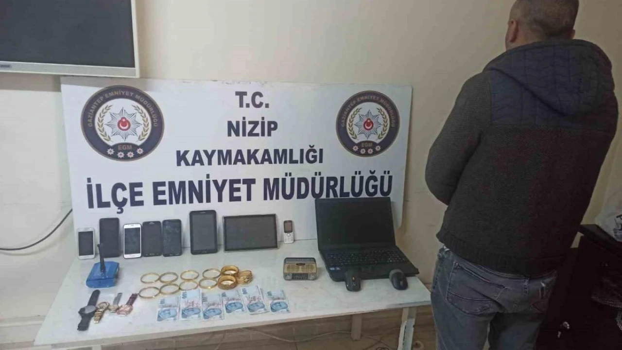 Gaziantep Emniyet Müdürlüğü’ne bağlı Nizip İlçe Emniyet Müdürlüğü ekipleri, farklı tarihlerde 2 ayrı ikamette meydana gelen hırsızlık olayları ile ilgili çalışma yaptı. Yapılan çalışmalar neticesinde, 2 ayrı evden ziynet eşyaları, para, cep telefonu, tablet, bilgisayar ve saat ile para çalınma olaylarını gerçekleştirdiği tespit edilen şüpheli çalıntı malzemelerle birlikte yakalandı.