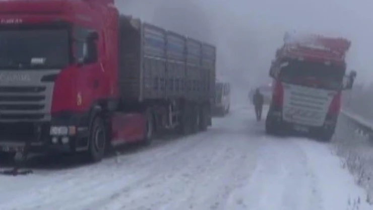 Kar yağışı nedeniyle bölgeden geçen karayolunda buzlanma oluştu. Yolcu minibüsleri, tırlar ve otomobiller kar ve buzlu yolda mahsur kaldı.