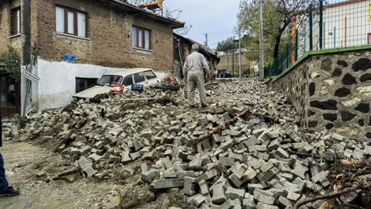 Dün gece yağan şiddetli yağmur sonrası yaşanan sel Rumlardan kalma tarihi evleri ve kiliseleri ile ünlü Mudanya’nın Tirilye Mahallesinde zarara yol açtı.