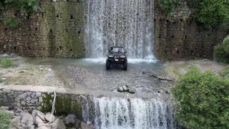 Test sonrası off road aracı şelalenin altına sokularak yıkandı. Derede off road anlarını dron ile görüntüleyen Mustafa Başgöze güzel görseller oluştuğunu kaydetti. Araç testten tam not aldı.