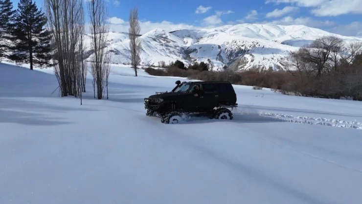 Bu sene Erzincan şehir merkezinde beklendiği kadar kar yağmayınca off road tutkunları yüksek kesimleri kendilerine pist edindi. Devasa görünümlü özel dizayn off road aracıyla karlı araziye çıkan Serhat Sarıçiçek ve arkadaşları, karın tadını çıkardı. Off road aracıyla el değmemiş karla kaplı yolları kat eden Sarıçiçek, kara kendini bırakıp kulaç atması da ilginç görüntü oluşturdu.