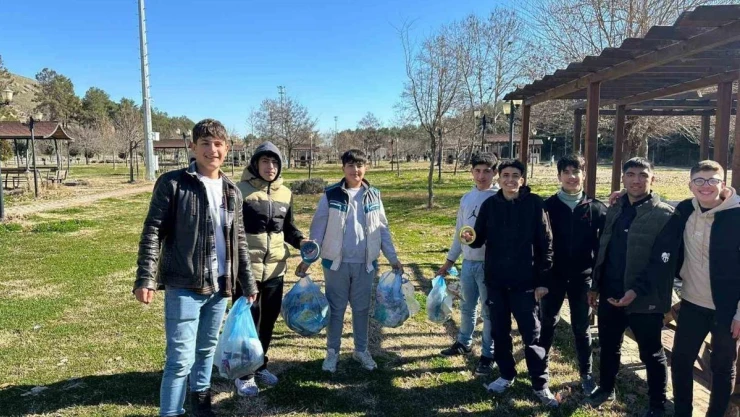 Adıyaman’da lise öğrencileri sosyal sorumluluk projesi kapsamında çevre temizliği yaptı.