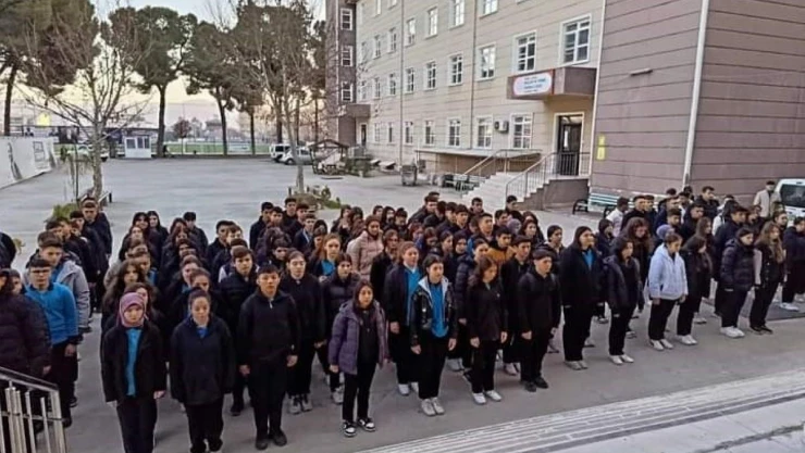 Öğrenciler depremde hayatını kaybedenler için saygı duruşunda bulundu