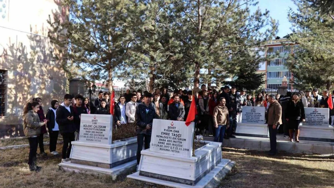 Erzurum’un Oltu ilçesinde lise öğrencileri şehitliği ziyaret ederek dua etti.