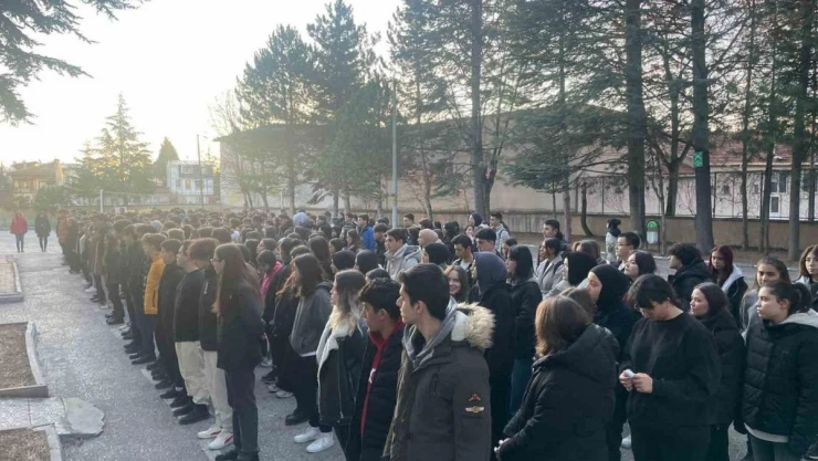 Eskişehir Gazi Mustafa Kemal Anadolu Lisesi’nde, 6 Şubat depremlerinin yıldönümü sebebiyle saygı duruşunda bulunuldu.