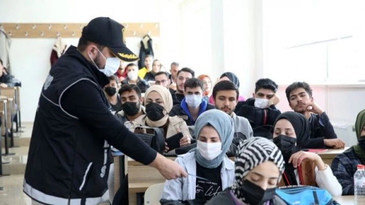 Muş Alparslan Üniversitesi Sosyal Bilimler Meslek Yüksekokulunda düzenlenen seminerde Narkotik Suçlarla Mücadele Şube Müdürü Halit Bozkurt, uyuşturucunun zararlarını anlattı.