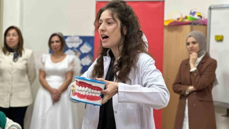 Müdür Uras, "Günümüzde çocuklarımızın hayatında sağlıklı beslenmenin yerini, ‘abur cubur’ diye tabir ettiğimiz atıştırmalıklarla beslenme aldı. İçlerinde yoğun şeker ve katkı maddeleri bulunan atıştırmalık ürünlerin çocuklarımız tarafından aşırı tüketilmesi, adeta bu ürünlerin sağlıklı besinlerin yerini alması nedeniyle maalesef çocuklarımızda diş çürüklerinde büyük artış gözlemliyoruz. Canik İlçe Sağlık Müdürlüğümüz tarafından bin 500 ilkokul öğrencimiz üzerinde yapılan çalışmada neredeyse yüzde 90 oranında çocuklarımızın dişlerinde çürüğe rastladık. Sağlık tesislerimizde 5 yaşındaki minik hastalarımızda bile 7-8 çürük tespit ettiğimiz vakalar görüyoruz. Artık ailelerimizin bugün dişlerde ve ağız sağlığında kendini gösteren, gelecekte farklı birçok sağlık sorununa neden olabilecek bu duruma, yani sağlıklı gıdaların yerini abur cubur tüketiminin almasına, dur demesi gerekiyor. Bugün biz de burada farkındalık oluşturmak için, 150 öğrencimize sağlıklı ve doğru beslenmeyle, diş sağlığının önemi ve korunması konularında eğitim vermeye ve diş kontrollerini yapmaya geldik. Eğitimimizde öğrencilerimize ağız içinde bulunan mikroorganizmaları göstererek, çürüğün dişlerimizde nasıl oluştuğunu ve sağlıklı beslenme ve diş bakımı iş birliği ile ağız sağlığımızı nasıl koruyacağımızı anlatıyoruz. Ama tabii ki çocuklarımıza anlatmamız yeterli değil. Burada asıl görev ailelerimize düşüyor. Bu vesileyle bir kez daha ailelerimize, duyarlı anne babalarımıza seslenmek istiyorum. Ailelerimizin bu duruma bir ‘dur’ demesinin zamanı geldi. Lütfen, evlerinizden abur cubur diye tabir ettiğimiz, aşırı şekerli ve katkı maddeli atıştırmalıkları uzak tutalım, bu ürünlerin sağlıklı beslenmenin yerini almasına izin vermeyelim. Evlerimizden ‘abur cubur çekmecelerini, köşelerini kaldıralım’. ‘Çok mu acıktın, o zaman bir çikolata, kraker ye, açlığını bastır’ benzeri cümleleri hayatımızdan çıkaralım. Çocuklarımızı kendi elimizle yıllar sürecek sağlıksız beslenme alışkanlığına itmeyelim. Bugün bu adımı atarak, çocuklarımızın gelecekteki sağlıklı günlerine ulaşmalarını sağlayalım” dedi.