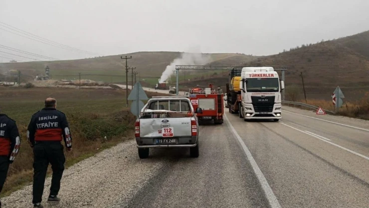 Edinilen bilgiye göre, İskilip-Çankırı yolunun 1. kilometresinde Bayat ilçesine oksijen tüpü taşıyan tırın gaz kaçırdığını fark eden şoför, aracı yolun sağ tarafına park ederek araçtan ayrıldı. Kendi imkanlarıyla gaz kaçağını önleyemeyen sürücü 112 Acil Yardım Hattını arayarak yardım istedi. Olay yerine intikal eden İskilip Belediyesi itfaiyesi ekipleri ve jandarma ekipleri güvenliğin sağlanması amacıyla yolu trafiğe kapattılar.