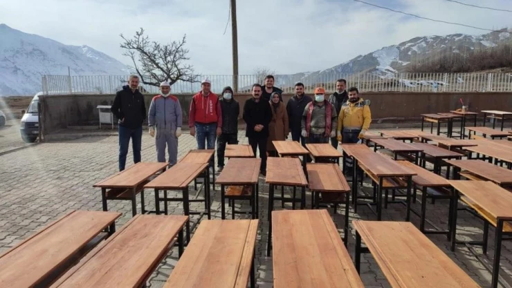 Hakkari Valisi ve Belediye Başkan Vekili Ali Çelik'in talimatıyla usta öğreticiler tarafından okullarda yıpranmaya yüz tutmuş okul sıraları yenileniyor.