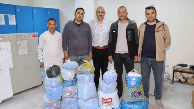 Oltu Kadastro personeli gönüllü olarak topladıkları binlerce mavi kapağı teslim edecek yer bulamıyorlar.