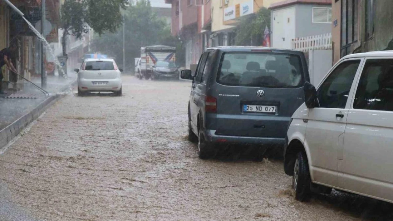 Erzurum’un Oltu ilçesinde öğleden sonra yağan sağanak yağmur hayatı olumsuz etkiledi.
