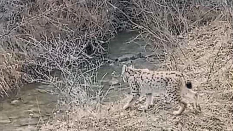 Köylere göreve gidenler kırsal kesimde dere kenarında vaşağın olduğunu fark ederek hemen cep telefonunu çıkardı. Telefon kayda girdikten bir süre sonra vatandaşları fark eden vaşak dereden karşıya geçip çalılığın içinde gözden kaybolurken o anları kayıt altına alındı.