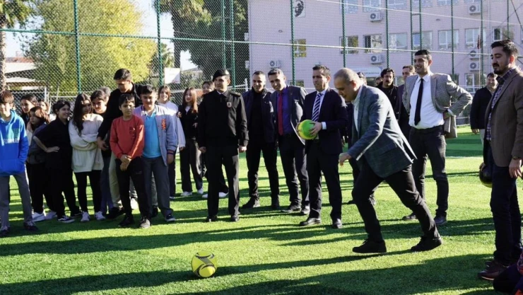 Açılış sonrası Ortaca kaymakamı Kenan Aktaş ve Ortaca Belediye Başkanı Alim Uzundemir öğrenciler ile sohbet ederek futbol oynadı.