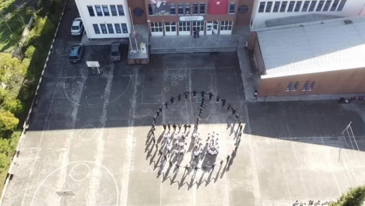 Yaklaşık 123 öğrenci ve 12 öğretmeninin desteğiyle okul bahçesinde, Atatürk’ün vefatının 85’inci yılı dolayısıyla ’09.05’ ve ’1938’ koreografisi oluşturdu.