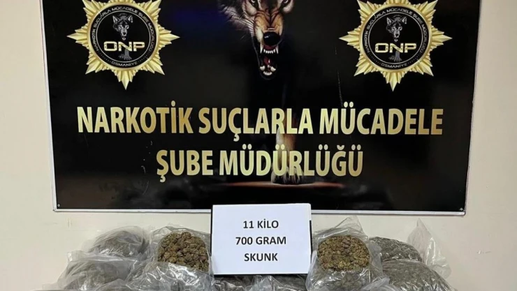 Osmaniye’de canlı tavuk taşıyan ticari araçta 11 kilo 700 gram skunk maddesi ele geçirildi.