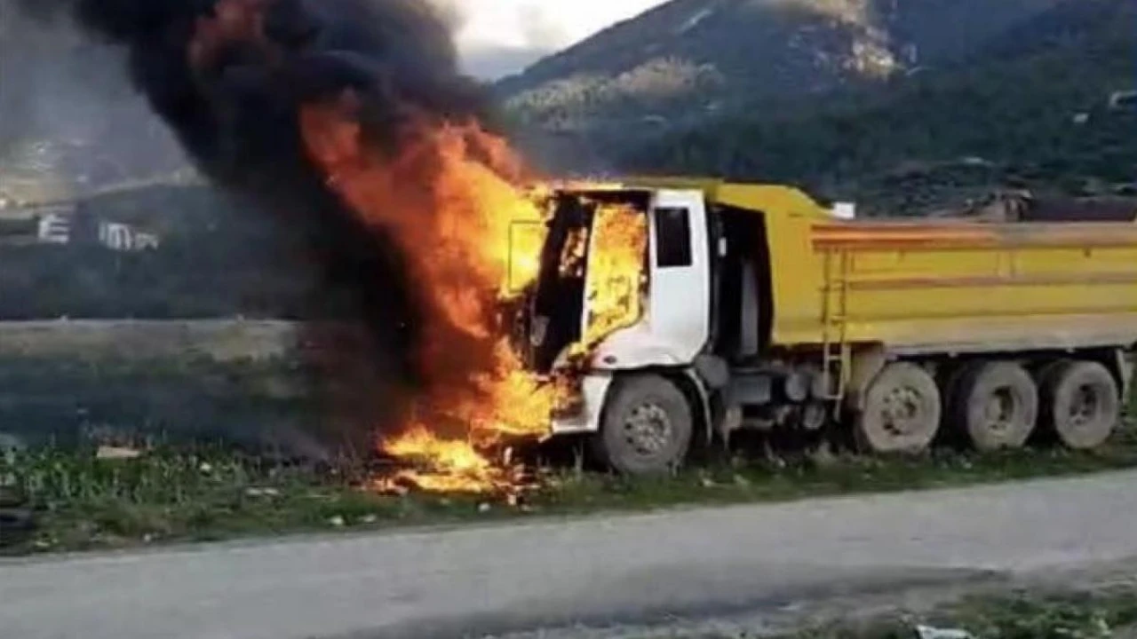 Osmaniye'de seyir halindeki hafriyat kamyonu motor bölümünden alev aldı. Sürücünün son anda alevleri fark ederek indiği kamyon alev topuna dönerken, itfaiye ekiplerinin müdahalesi ile yangın söndürüldü. Araç kullanılamaz hale geldi.