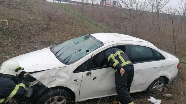Otobanda kontrolden çıkan otomobil yeşil alana uçtu: 1 yaralı