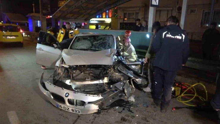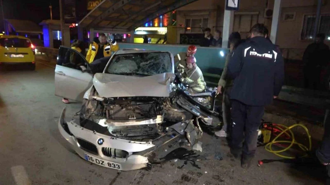 Otomobil Bursaray'ın bariyerine çarptı: Sürücü araçta sıkıştı