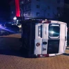 Otomobil ile çarpışan minibüs devrildi: 2 yaralı
