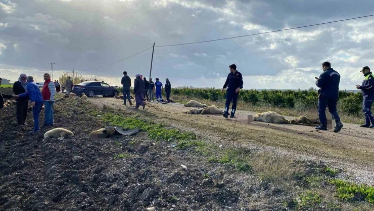 Adana'nın Yumurtalık ilçesinde sahil yolunda otomobilin koyun sürüsüne dalması sonucu yaklaşık 50 koyunun telef olduğu öne sürüldü.