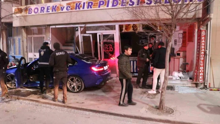 Afyonkarahisar'da kontrolden çıkan lüks otomobil börekçi dükkanına daldı. Kaza esnasında dükkanın boş olması, yaşanabilecek bir facianın önüne geçti.