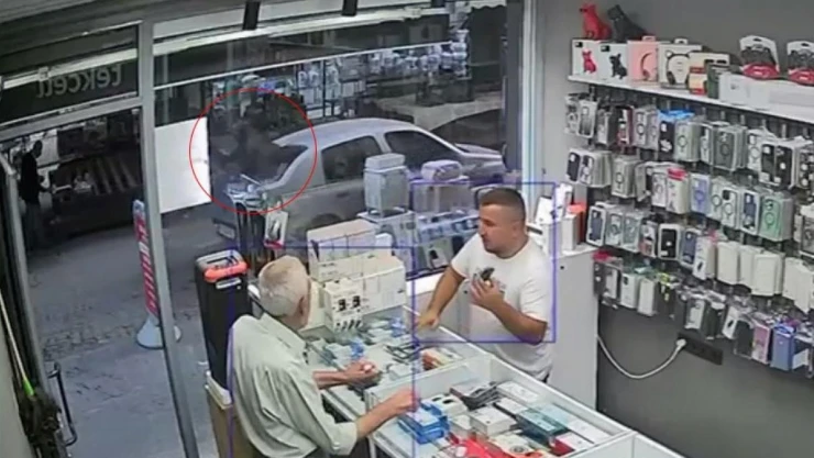 Mersin'de pazar yerinde hareket halindeki otomobilin üzerine bir evin damından keçi düştü. O anlar ise güvenlik kameralarına yansıdı.