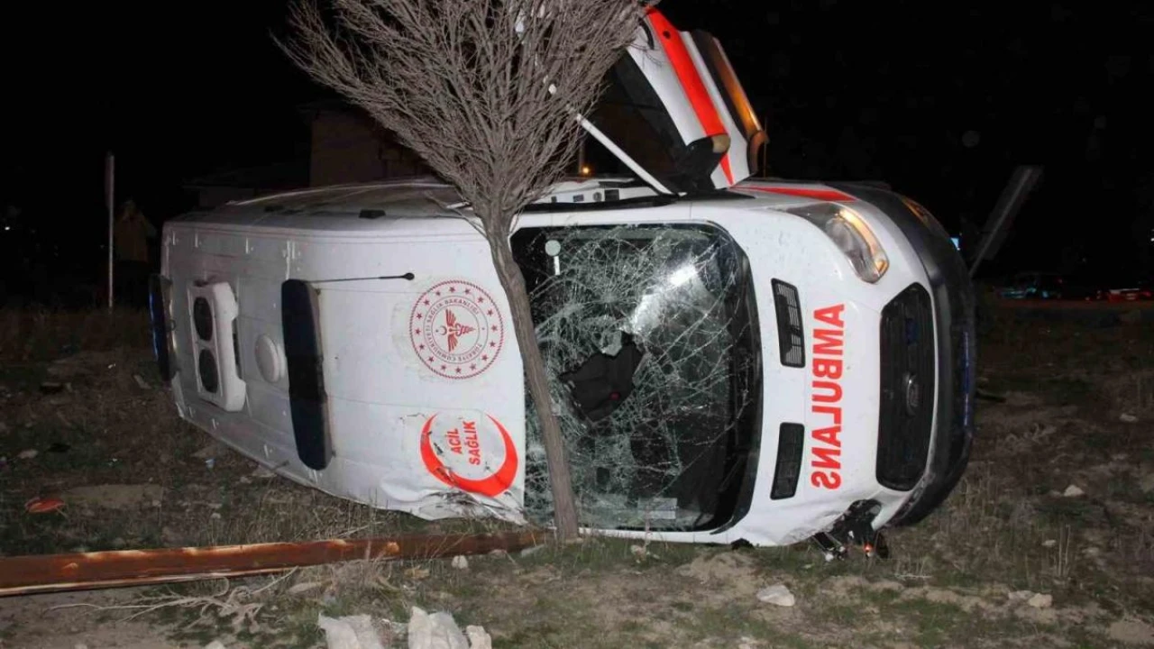 Otomobille çarpışan ambulans devrildi: 5 yaralı